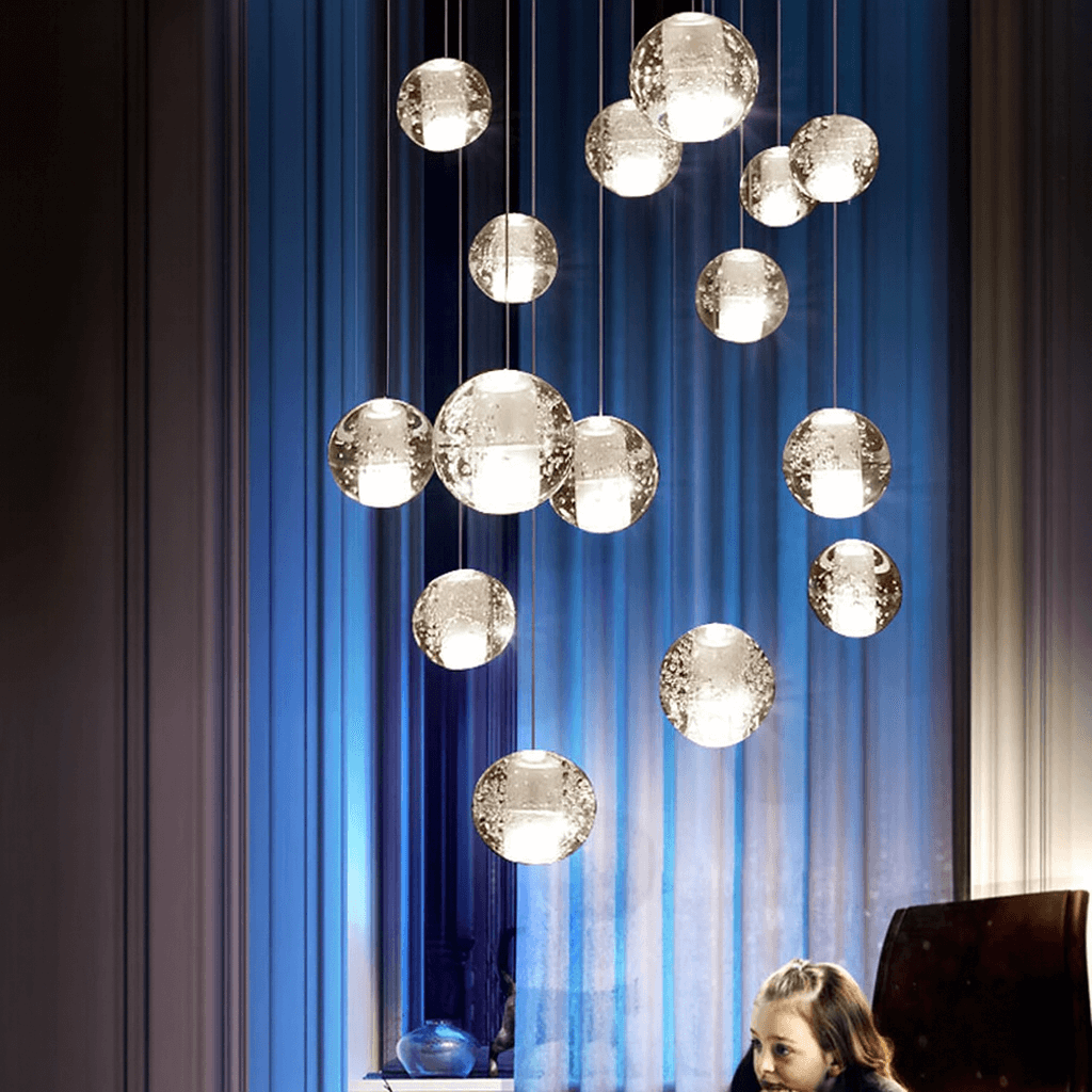 This stunning pendant light features a beautiful crystal glass ball design, perfect for enhancing the ambiance of any indoor space. With its adjustable cable, it can be customized to fit your specific lighting needs, making it an ideal choice for restaurants, bars, and home decor.