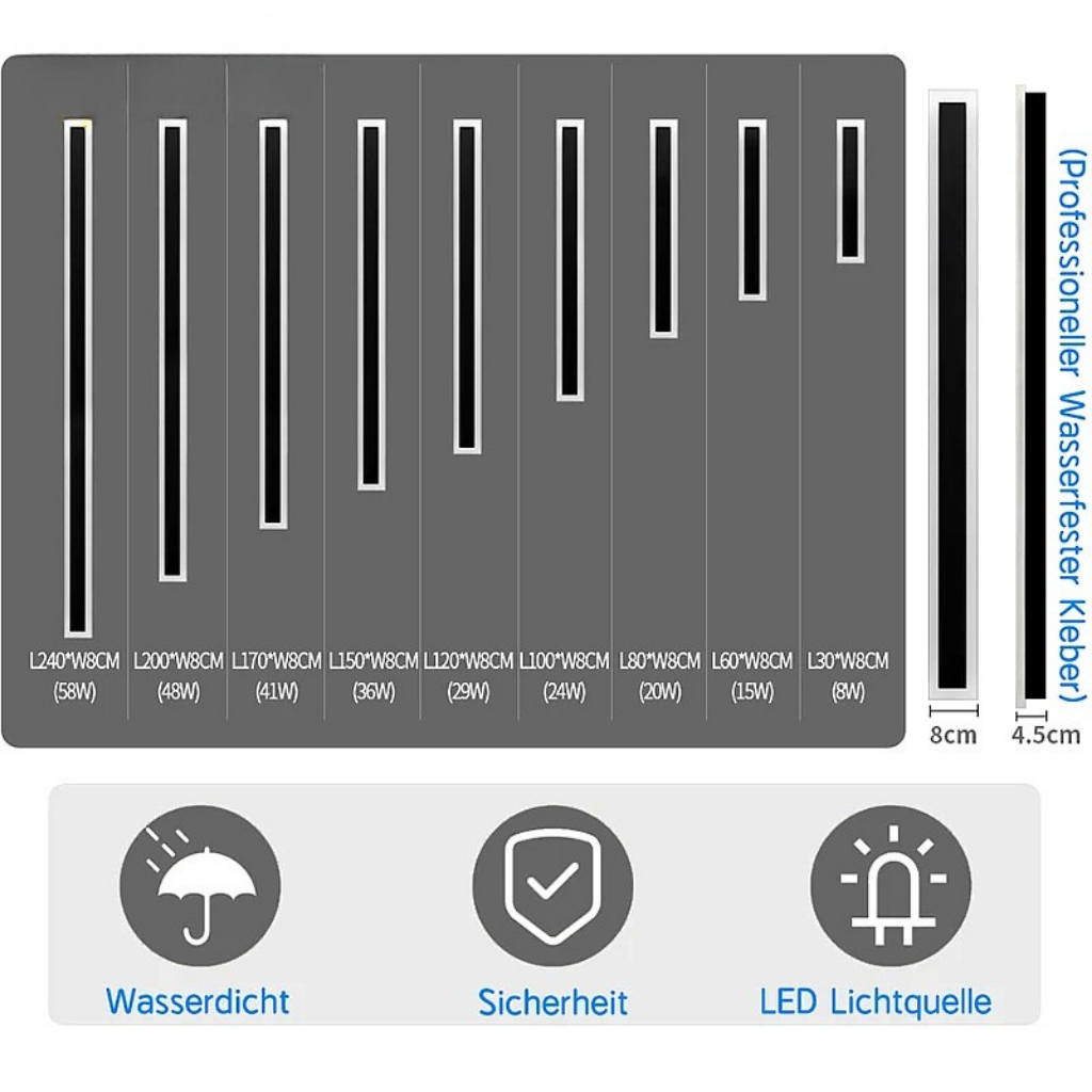 This outdoor linear wall lamp is designed to enhance your garden or garage with its sleek and modern aesthetic. Built to withstand the elements, it features waterproof and anti-rust properties, making it a durable choice for any outdoor setting.